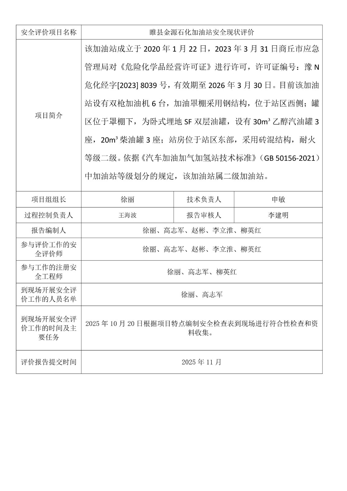 汝州市海洋石油有限公司临登路加油站安全现状评价
